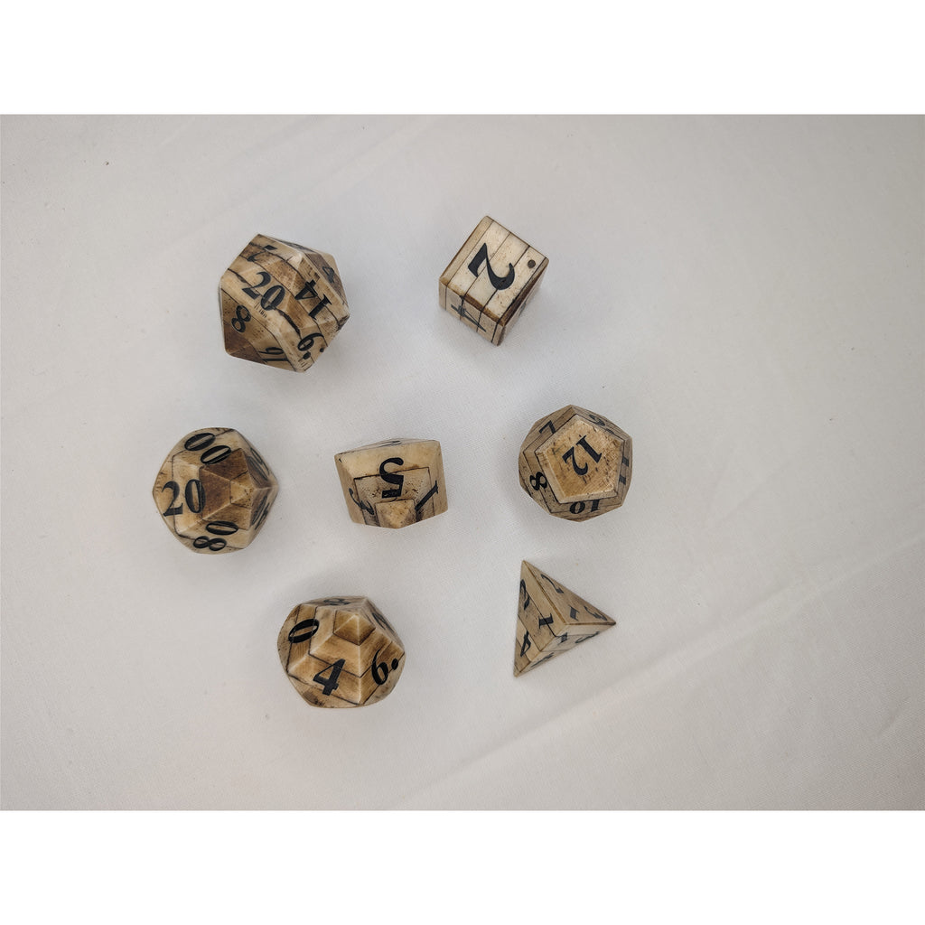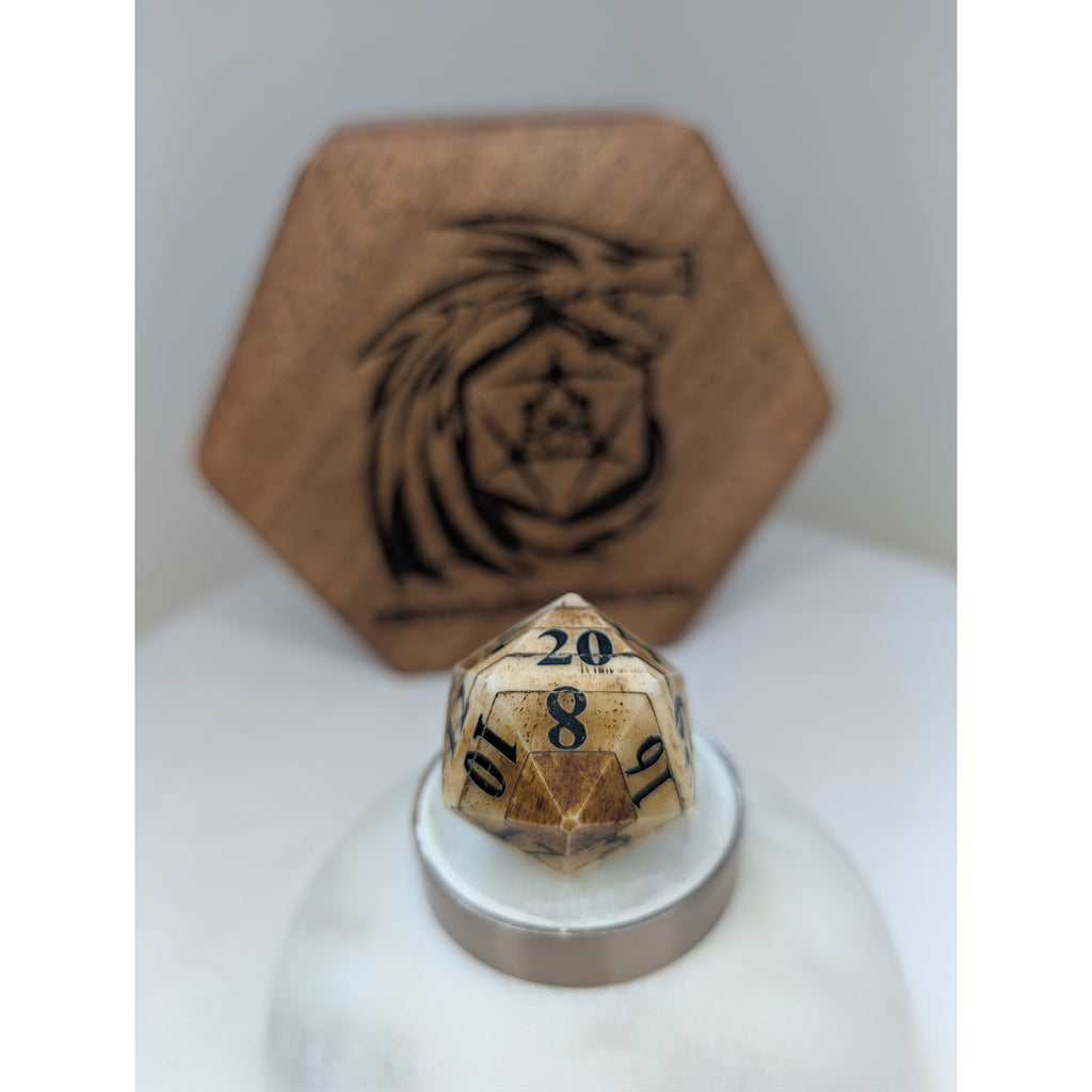 These dice are handmade and from ethically sourced water buffalo. As a unique natural item, there are natural variations. We also recommend that you roll them on something with a soft surface.